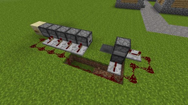 3、之后玩家将物品放入到投掷器中储存,然后再使用红石电路元件进行连接;